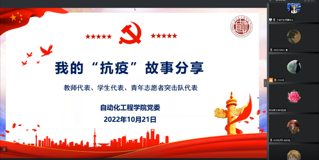 10月21日,學(xué)員們線上參加了“抗疫”故事分享會(huì)。學(xué)院的輔導(dǎo)員代表、青年志愿者突擊隊(duì)成員、志愿者代表分別介紹了自己在疫情期間所做的志愿工作,深情地向大家分享了其中發(fā)生的感人故事。通過(guò)這次分享,學(xué)員們更能體會(huì)到越是在困難時(shí)期,無(wú)私奉獻(xiàn)的人越是偉大。嘉賓們以故事分享的形式給學(xué)員們上了一堂生動(dòng)的黨課,學(xué)員們紛紛表示要堅(jiān)定入黨信念,認(rèn)真貫徹落實(shí)全心全意為人民服務(wù)的宗旨。