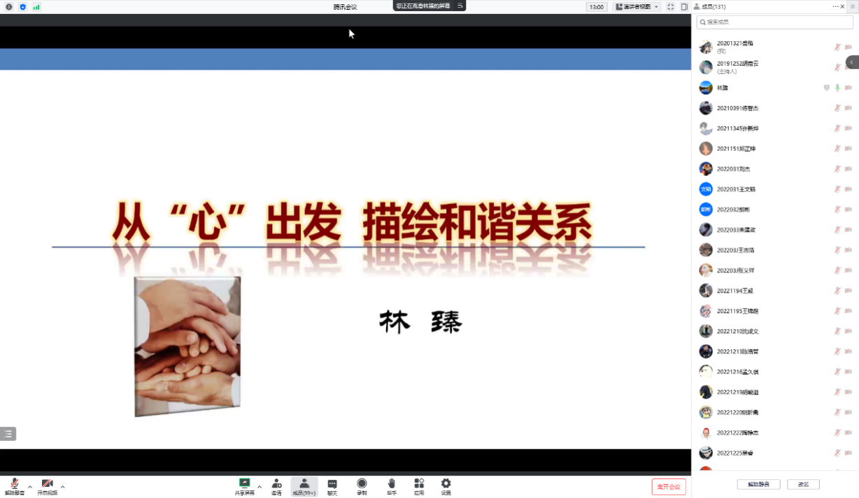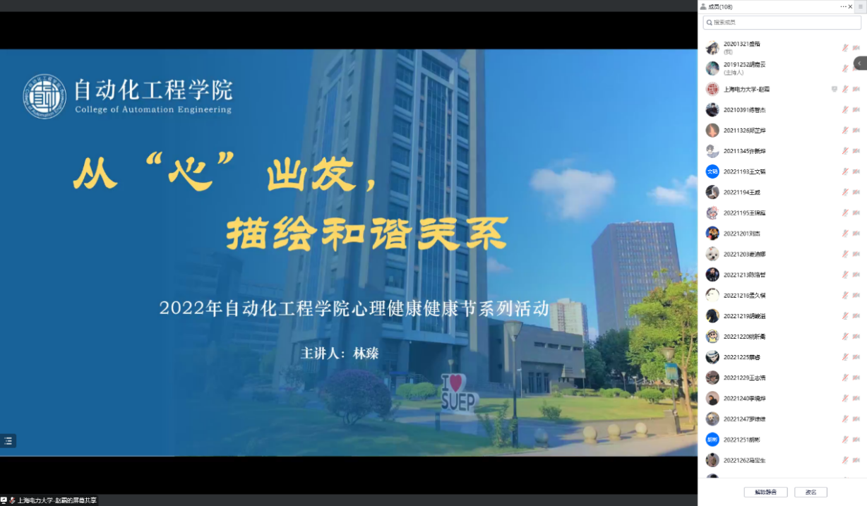 本次講座的開始,林臻老師以心理學(xué)的視角導(dǎo)入,介紹了心理學(xué)的發(fā)展和意義,讓同學(xué)們認(rèn)識到今天的心理學(xué)已經(jīng)與我們息息相關(guān),進(jìn)而引出今天講座的主題:人際關(guān)系。林臻老師提到,我們與自己、親人、朋友、伴侶等等一系列關(guān)系是作為人與社會鏈接的必要組成,并用雙人舞來比喻關(guān)系的建立,同時結(jié)合當(dāng)下熱詞以及同學(xué)們的常見問題,全面進(jìn)行了解讀。