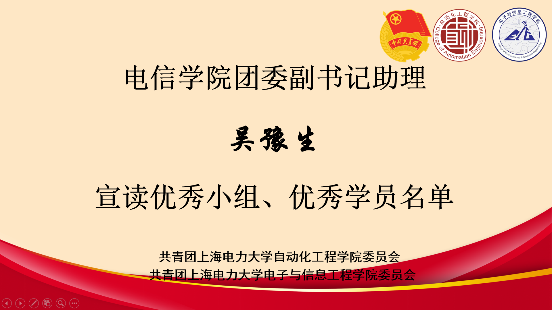 2022年11月25日,在校黨委的領(lǐng)導(dǎo)和院團(tuán)委的指導(dǎo)下,在兩院青年深入學(xué)習(xí)貫徹落實(shí)黨的二十大精神熱潮中,上海電力大學(xué)自動(dòng)化學(xué)院及電信學(xué)院共同舉辦的第四期初級(jí)團(tuán)校順利結(jié)業(yè)。自動(dòng)化學(xué)院&電信學(xué)院第四期初級(jí)團(tuán)校閉幕式于18:30在騰訊會(huì)議舉行。