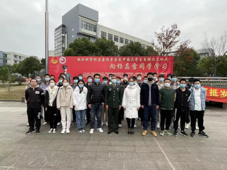 最后,電氣工程學院劉紫薇老師做了總結以及心得分享。她介紹到楊昌雷同學擔任在2018級新生軍訓教官時恪盡職守,嚴格要求學員,幫助新生完成一次蛻變。她評價楊昌雷同學真正做到將“愛國勤學,務實奮進”的校訓刻在心中,并不斷榮獲嘉獎,想必在日常生活中也是嚴格要求自己,是一個有血有肉的戰(zhàn)士,她呼吁同學們要做像楊昌雷同志一樣的有理想有擔當肯吃苦的有志青年。會后與會全體人員進行合影留念。