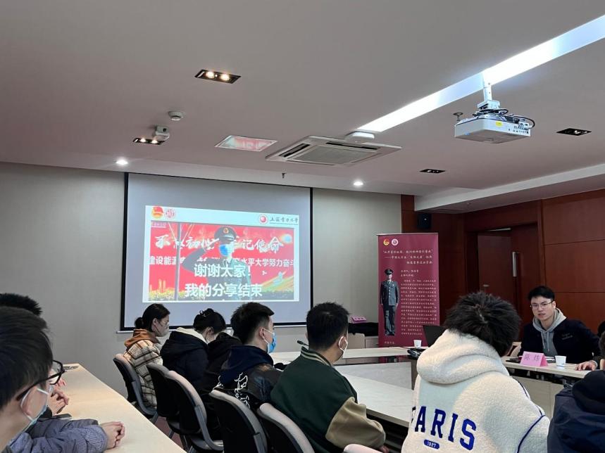 隨后,楊昌雷同志為我們分享他的事跡。他說從小就有一個軍人夢,至今仍記得初中時‘偷穿’過大姐軍裝時的激動心情,也記得入伍體檢那天清晨的第一縷陽光,更記得確定入伍時的狂喜之情。這一路走來,有最初那個軍人夢的力量支撐著他,也有內(nèi)心不斷呼喚的聲音激勵著他,一步一步向軍營靠近。2017年進入大學后,在校期間他加入校國旗護衛(wèi)隊,用刻苦訓練的汗水護衛(wèi)國旗,弘揚愛國主義精神。因訓練扎實、軍事技能過硬先后受聘擔任2018級、2022級新生的學生軍訓教官。最終,2019年9月成功參軍入伍,服役于中國人民解放軍駐香港部隊。在香江之畔,他是維護“一國兩制”的香江衛(wèi)士。駐香港部隊授予他“新時期大渡河連十七勇士獎章”。2021年9月份退役復學,校園生活中軍人的優(yōu)良作風并沒有退役。