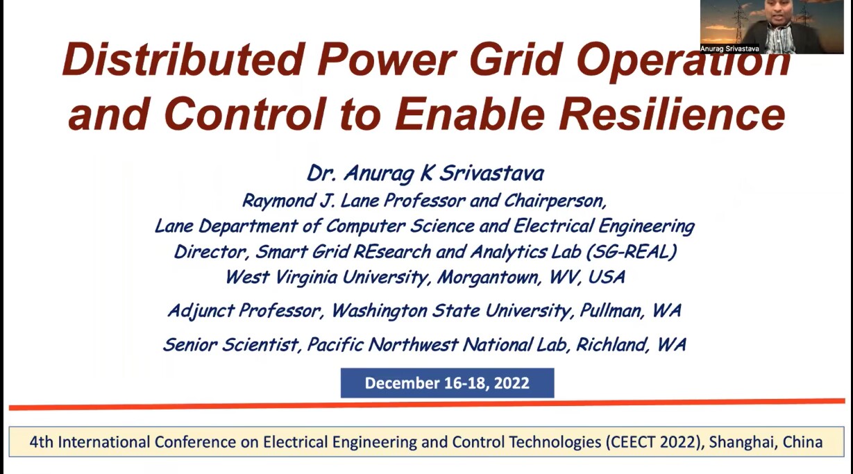 本次大會(huì)共邀請(qǐng)到6位國(guó)內(nèi)外著名專家做大會(huì)主旨報(bào)告和2位業(yè)內(nèi)專家做特邀主題報(bào)告。IEEE會(huì)士、美國(guó)西弗吉尼亞大學(xué)Anurag Srivastava 教授首先帶來(lái)了題為《Distributed Power Grid Operation and Control to Enable Resilience》的報(bào)告,重點(diǎn)討論了實(shí)時(shí)網(wǎng)絡(luò)環(huán)境下電力數(shù)據(jù)分析和分布式優(yōu)化實(shí)例,以在DER-rich的環(huán)境中為電網(wǎng)實(shí)現(xiàn)彈性控制提供支持,并對(duì)當(dāng)前研究技術(shù)的局限性和未來(lái)的研究需求給出展望。